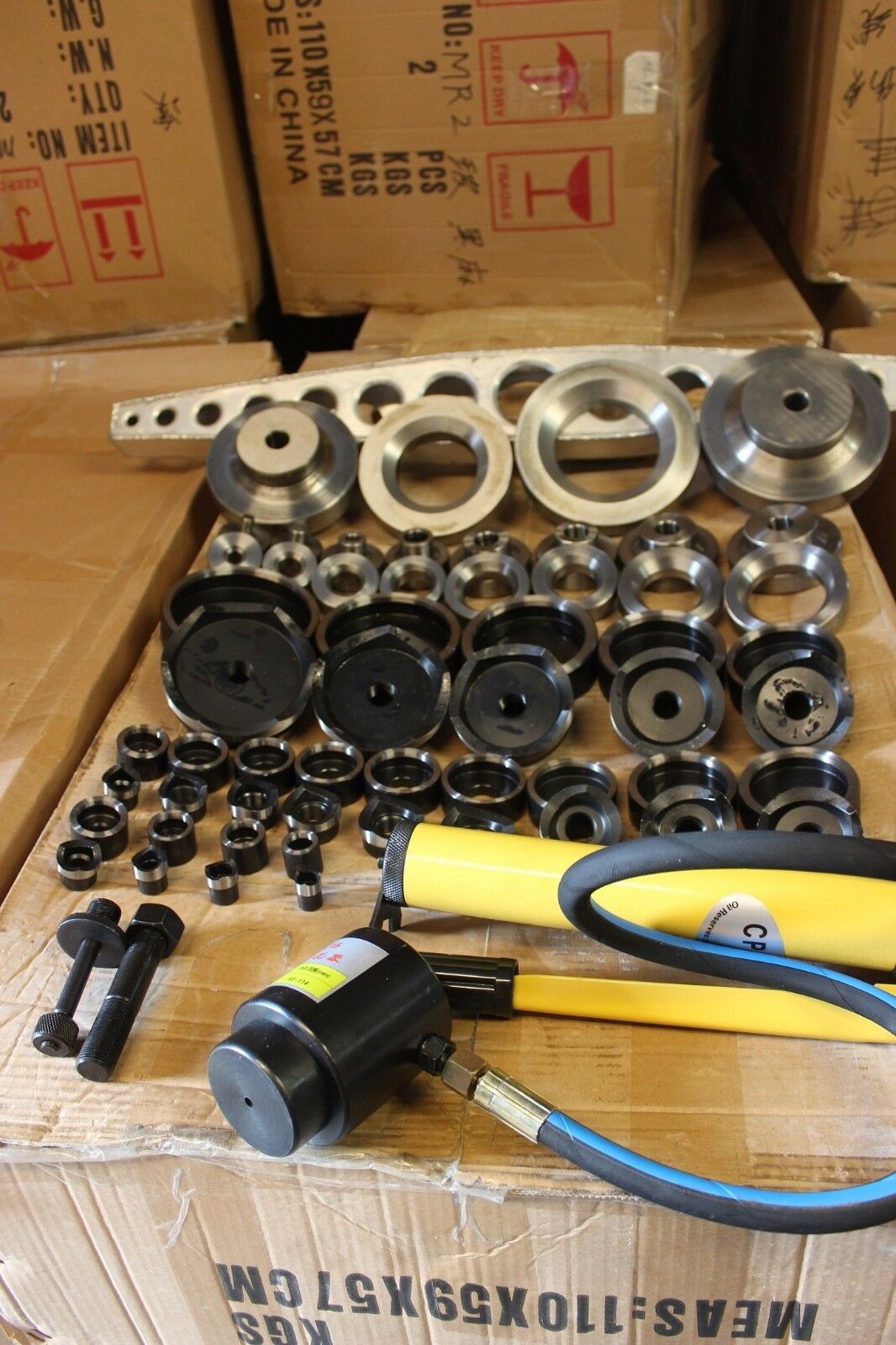 56-Piece Dimple Die & Hydraulic Hole Punch Set – 16–114mm Cut, ½–4″ Taper